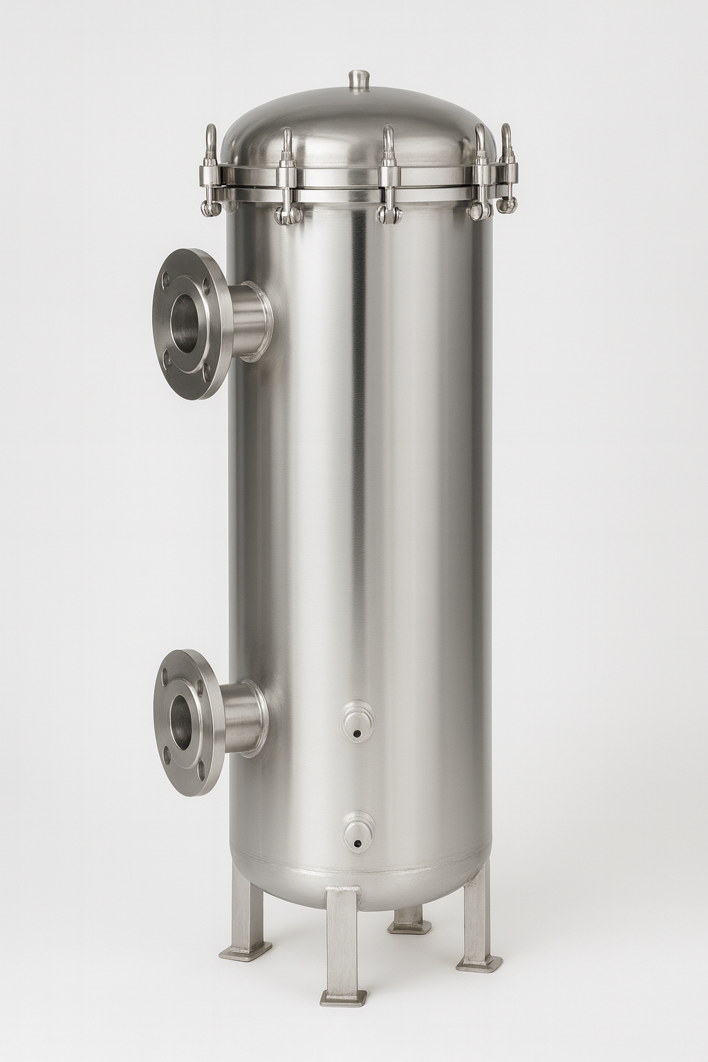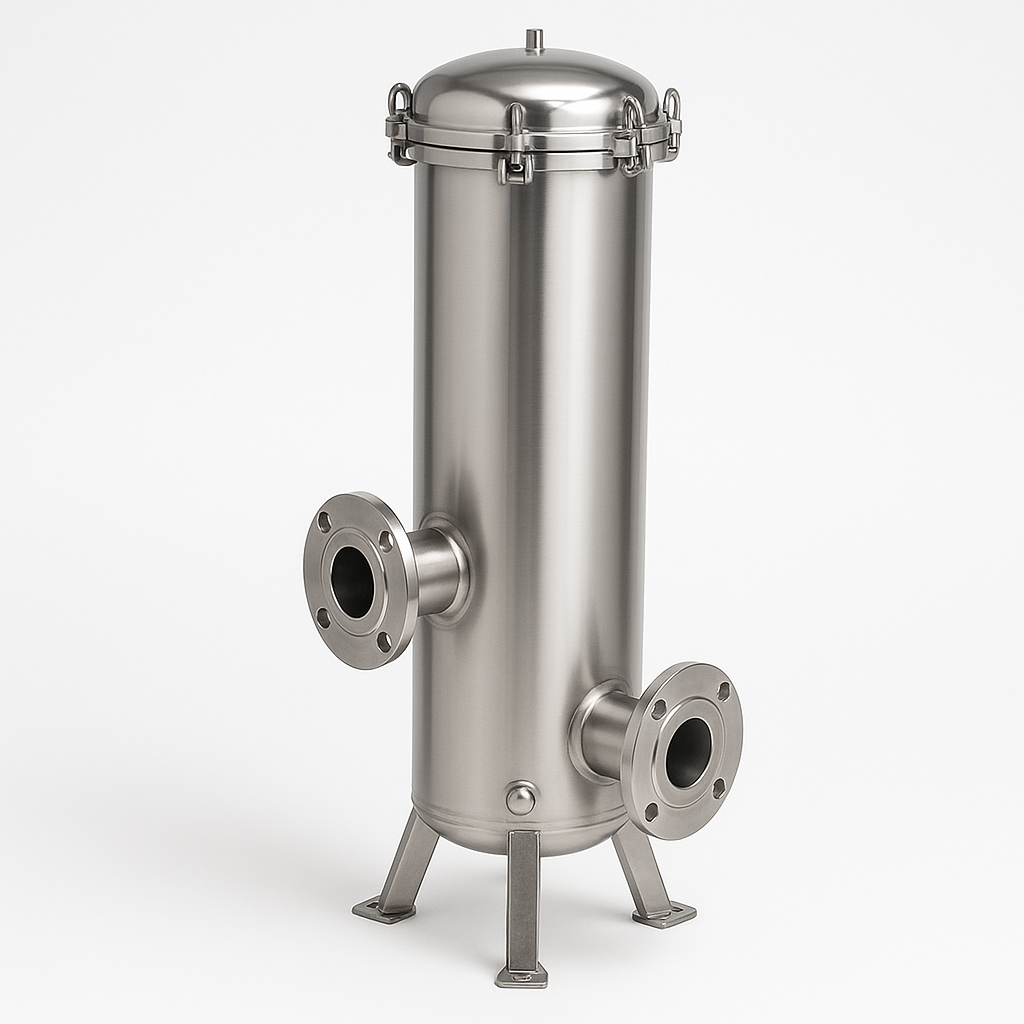 Stark Fast-Loading Cartridge Filter Housing is designed for efficiency and stability. Featuring integral stainless steel legs (floor-standing) and a rapid-access top closure, this series handles flow rates from 4.5 to 55 m³/h, making it the ideal solution for industrial filtration systems requiring frequent maintenance.