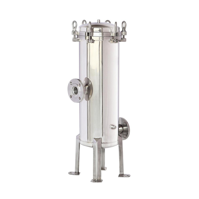 This stainless steel cartridge filter housing with flange-type quick fitting and support legs is designed for high-performance water filtration. It accommodates PP sediment filter cartridges and is ideal for pretreatment in reverse osmosis systems and other industrial applications.